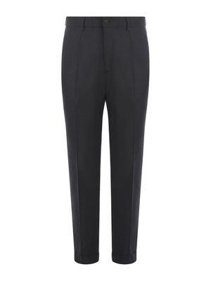 Pantaloni Briglia in lana vergine stretch di colore Grigio Antracite. Elastico in vita. Passanti per cintura. Chiusura con bottone e zip. Pience davanti. Tasche laterali. Tasche a filo con bottone sul retro.99% Lana Vergine, 1%ElastanMade in Italy