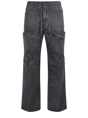 Pantaloni cargo Diesel in cotone Grigio antracite. Chiusura con bottone e zip. Elastico con coulisse in vita. Tasche laterali con chisura zip. Maxi tasconi sul davanti. Tasche a filo sul retro con bottoni. Logo ricamato sul retro.100% cotone