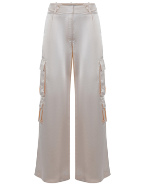 Pantaloni cargo Self-Portrait realizzato in raso di colore Crema. Passanti per cintura. Tasche laterali. Chiusura con patta e zip. Tasche cargo con patta, laterali. Gamba larga. Tasche con patta sul retro.80% Viscosa, 20% Lino Scala Taglie UK SIZE 4 6 8 10 12 14 16IT SIZE 36 38 40 42 44 46 48