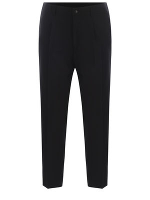 Pantaloni Costumein "Valerio"realizzati in tela di lana di colore Nero. Passanti per cintura. Tasche america. Chiusura con bottone e zip. Piega stirata davanti.Tasche a filo sul retro.100% LanaMade in Italy