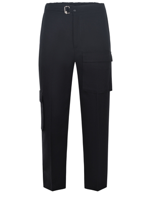 Pantaloni Costumein realizzati in misto lino di colore Nero. Chiusura con bottone e zip. Cinturino regolabile in vita. Tasche laterali. Tasconi cargo. Tasche sul retro con patta.54% lyocell 46% lino Made in Italy