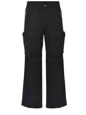 Pantaloni Diesel realizzati in cotone di colore Nero. Elastico in vita. Chiusura con zip e bottone. Tasche con zip, laterali. Tasche cargo, ai lati. Logo " Oval D" ricamato tono su tono sul retro. Tasche a filo con borrone sul retro.100% Cotone