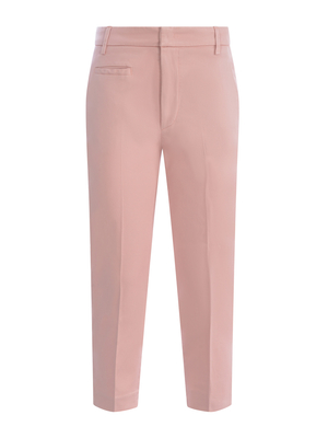 Pantaloni Dondup " Ariel" in cotone stretch di colore Rosa. Vita regolare. Passanti per cintura. Tasca a filo davanti. Tasche laterali. Chiusura con gancio, zip e bottone. Lunghezza alla caviglia. Tasche a filo sul retro. Logo "D" in metallo applicato alla tasca. 67% Cotone, 29% Lyocell, 4% Elastan Made in Italy