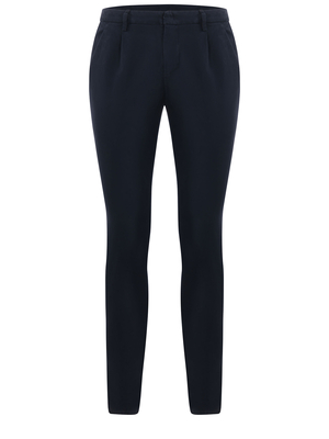 Pantaloni Dondup "gaubert" in gabardina stretch Blu scuro. Pinces frontali. Tasche america. Tasche posteriori a filo con bottone. Chiusura con zip e gancio. Logo in metallo sulla tasca posteriore. Slim fit. Misura in foto 3099% cotone, 1% elastene