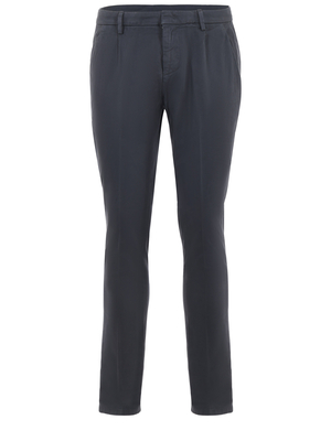 Pantaloni Dondup "gaubert" in gabardina stretch Grigio scuro. Pinces frontali. Tasche america. Tasche posteriori a filo con bottone. Chiusura con zip e gancio. Logo in metallo sulla tasca posteriore. Slim fit. Misura in foto 3299% cotone, 1% elastene