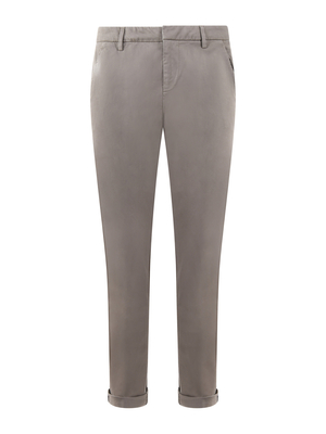 Pantaloni Dondup "Gaubert" in gabardina stretch Tortora. Passanti per cintura. Chiusura con gancio e zip. Tasche america. Tasche a filo posteriori. Logo "D" in metallo sulla tasca posteriore. Risvolto non cucito al fondo.98% cotone, 2% elastene