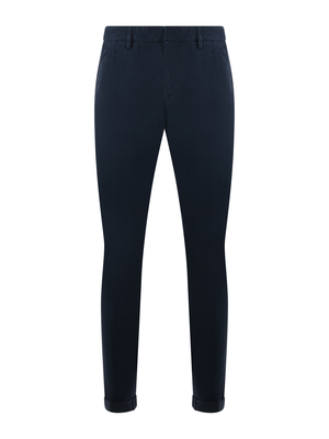 Pantaloni Dondup "Gaubert" in gabardina stretch Blu scuro. Passanti per cintura. Chiusura con gancio e zip. Tasche america. Tasche a filo posteriori. Logo "D" in metallo sulla tasca posteriore. Risvolto non cucito al fondo.98% cotone, 2% elastene