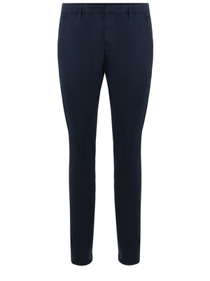 Pantaloni Dondup " Gaubert" in gabardina leggera di colore Blu. Passanti per cintura. Tasche a filo laterali. Chiusura con zip, gancio e bottone. Tasche a filo con bottone sul retro. Logo "D" in metallo applicato sulla tasca sul retro. Vestibilità Gaubert.96% Cotone, 4% Elastan Made in Italy