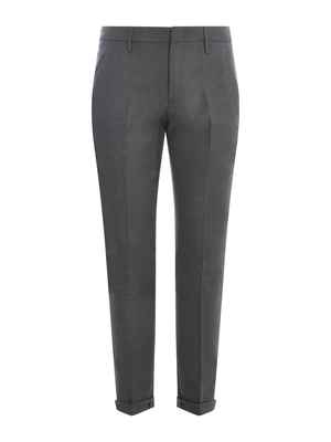 Pantaloni Dondup " Gaubert" in lana vergine stretch di colore Grgio Chiaro. Passanti per cintura. Chiusura con gancio e zip nascosta. Tasche america. Logo "D" in metallo applicato sulla tasca posteriore. Tasche a filo posteriori. 99% Lana Vergine, 1% Elastan Made in Italy