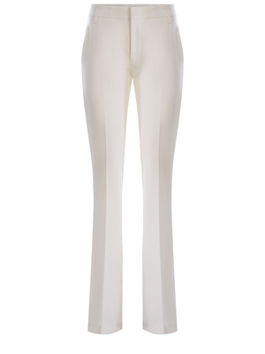 Pantaloni Dondup realizzati in fresco lana di colore Bianco. Vita alta. Passanti per cintura. Skinny fit. Logo "D" applicato sulla tasca posteriore. Tasche a filo sul retro. 99% Lana Vergine, 1% Elastan Made in Italy