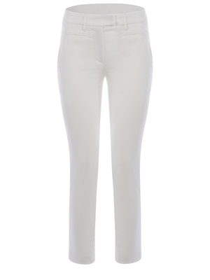 Pantaloni Dondup in cotone stretch color Panna. Tasche america e taschino. Tasche posteriori a filo con bottone. Chiusura con zip e gancio. Logo in metallo sulla tasca posteriore. Misura in foto 2697% cotone, 3% elastene