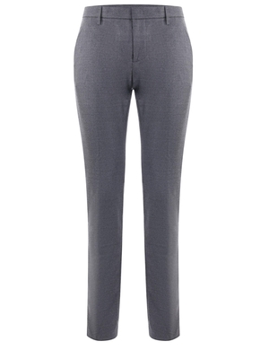 Pantaloni Dondup in flanella stretch Grigio scuro. Passanti per cintura. Tasche america. Chiusura con zip, gancio e bottone. Tasche a filo con bottone sul retro. Logo "D" in metallo applicato sulla tasca sul retro. Vestibilità Spiritissimo. Slim fit.99% lana, 1% elastene Made in Italy