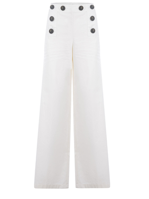 Pantaloni Dsquared 2 in cotone Bianco. Passanti per cintura. Dettaglio bustino con bottoni. Tasche laterali. Gamba ampia. Tasche a filo sul retro.100% Cotone