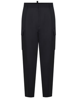 Pantaloni Dsquared 2 in misto lana vergine di colore Nero. Chiusura con gancio e zip. Passanti per cintura. Pence sul davanti. Tasche laterali. Tasche all'americana con bottone. Tasche a filo sul retro con bottone. Logo in metallo applicato sul retro.98% lana vergine 2% elastene Made in Italy