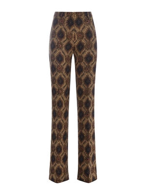 Pantaloni Etro realizzati in misto cotone di colore Marrone/ Nero. Motivo fantasia all-over. Passanti per cintura. Chiusura con gancio, zip e bottone nascosti. Svasati al fondo. Tasche a filo sul retro.42% Poliestere, 42% Cotone, 11% Acrilico, 5% Altre Fibre Made in Italy