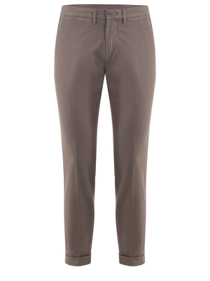 Pantaloni Fay in gabardina stretch Tortora. Leggero effetto stone wash. Tasche america. Tasche posteriori a filo con pattina e bottone. Gamba dritta. Risvolto cucito al fondo. Chiusura con zip e gancio. Misura in foto 3298% cotone, 2% elastene