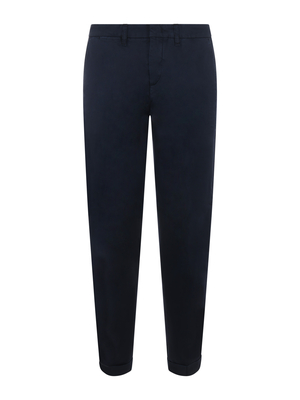 Pantaloni Fay in gabardina stretch Blu scuro. Tasche america. Tasche posteriori a filo con bottone. Gamba dritta. Risvolto cucito al fondo. Chiusura con zip e gancio. Misura in fote 3497% cotone, 3% elastene