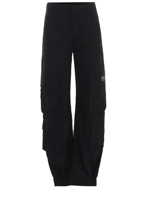 Pantaloni Golden Goose realizzati in nylon di colore Nero. Passanti per cintura. Tasche laterali. Chiusura con bottone a pressione e zip. Tasche con patta laterali. Lettering logo " Star Golden Goose" a contrasto Bianco. Fondo con bottone. Tasche applicate sul retro.100% Nylon Made in Italy