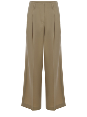 Pantaloni Golden Goose realizzati in lana di colore Cammello. Vita alta. Gampa ampia. Pences sul davanti. Tasche laterali a filo. Chiusura con zip bottone e gancetto nascosti. Passanti per cintura. Tasche sul retro con patta e bottone. Stelle in metallo di colore Argento sul retro.100% lana vergine Made in Italy