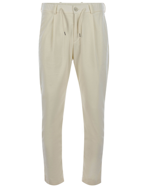 Pantaloni Herno realizzati in velluto a coste di colore Crema. Passanti per cintura. Inserto elastico con coulisse. Pinces davanti. Chiusura con bottone e zip. Tasche laterali. Foderato. Patch logo in metallo applicato sul retro. Tasche a filo con bottone sul retro. Regular fit. Fodera 100% Cotone 100% Poliestere