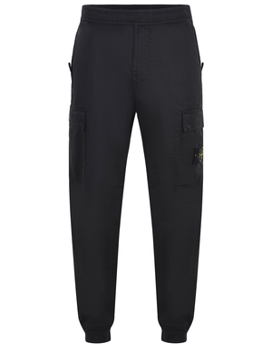 Pantaloni Stone Island in cotone Nero. Elastico in vita. Tasche laterali con zip. Tasconi frontali e tasca sul retro con bottoni. Polsini sul fondo elastici a costine. Patch logo applicata sul tascone laterale sinistro.93% cotone 5% lana 2% elastene