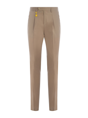 Pantaloni Manuel Ritz in cotone di colore Cammello. Passanti per cintura. Logo applicato al passante. Chiusura con gancio, zip e bottone. Pince davanti. Tasche laterali. Tasche a filo con bottone sul retro.100% Cotone Made in Tunisia