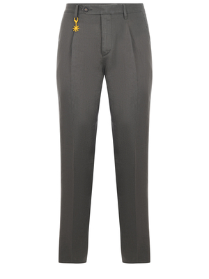 Pantaloni Manuel Ritz realizzati in misto lana di colore Grigio acciaio. Chiusura con bottone e zip. Tasche laterali. Pences sul davanti. Passanti per cintura. Tasche sul retro con bottone. Etichetta logo ricamata sul retro a contrasto. Gamba diritta.98% lana 2% elastene ...