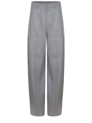 Pantaloni Max Mara " Abetaia" realizzato in lana di colore Grigio. Chiusura con listino alto in vita, zip con patta e bottone. Tasche applicate sul davanti. Tasche a toppa sul retro con etichetta logo in pelle. Passanti per cintura. Sfoderati.100% lana Made in Italy