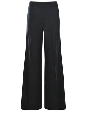Pantaloni Max Mara " Arsenio 1234" realizzati in pura lana mélange di colore Grigio Antracite. Designer con pannello, da annodare di lato. Piega stirata. Chiusura con zip invisibile, laterale. Gamba larga. 98% Lana Vergine, 2% Elastan Made in Italy