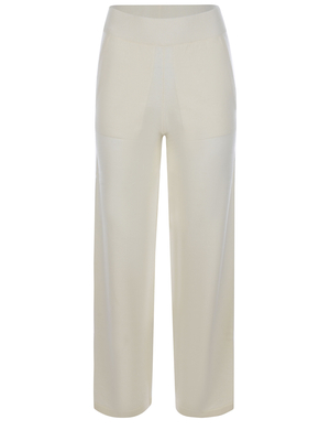 Pantaloni Max Mara Leisure "Ghiro" realizzati in filato di lana e cashmere di colore Crema. Linea dritta. Elastico in vita. Tasche laterali. 80% Lana, 20% CashmereMade in Italy