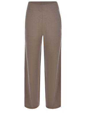 Pantaloni Max Mara Leisure "Ghiro" realizzati in filato di lana e cashmere di colore Tortora. Linea dritta. Elastico in vita. Tasche laterali. 80% Lana, 20% CashmereMade in Italy