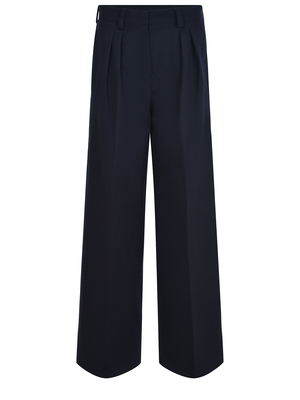 Pantaloni Max Mara " Molo" realizzati in misto lana di colore Blu scuro. Chiusura con listino alto in vita, zip con patta e bottone. Pinces sul davanti. Tasche laterali. Tasche sul retro. Passanti per cintura.62% lana vergine 33% cotone 5% elastene Made in Italy