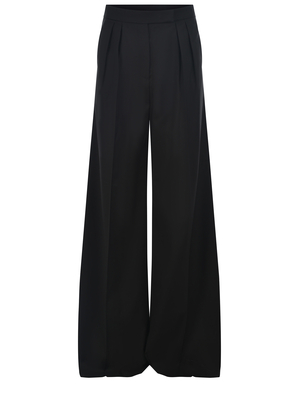 Pantaloni Max Mara "Rimini" realizzati in pura lana di colore Nero. Vita alta. Doppia pinces in vita. Tasche laterali. Chiusura con gancio e zip. Silhouette con gamba larga. 100% Lana VergineMade in Italy