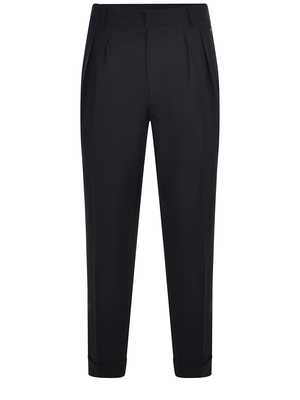 Pantaloni New York Resident realizzato in misto lana di colore Nero. Chiusura sul davanti con gancetto e zip. Passanti per cintura. Pences sul davanti. Tasche laterali. Tasche sul retro con patta e bottone. Piega sul fondo. Patch logo applicata sul fondo a contrasto.52% poliestere 43% lana 5% elastene Made in Italy