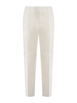 Pantaloni Pinko " Bello" in lino stretch di colore Bianco. Passanti per cintura. Tasche laterli. Chiusura con gancio, zip e bottone. Foderato. Dettaglio piega stirata davanti e sul retro. Tasche a filo sul retro. Cigarette-fit. Fodera 100% Cotone 59% Lino, 38% Viscosa, 3% Elastan Made in Italy