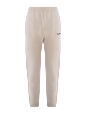 Pantaloni 'S Max Mara "Oncia" in felpa di cotone di colore Beige Chiaro. Garzatura interna. Elastico in vita. Tasche laterali. Lettering logo "Max Mara" a contrasto Nero. Fondo elastico.88% Cotone, 8% Poliammide, 4% ElastanMade in Italy