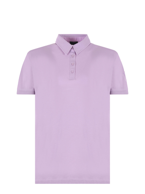 Polo Blauer in misto cotone e modal Glicine. Colletto con apertura a 4 bottoni. Manica corta. Spacchetti al fondo. Patch logo sulla manica sinistra. Misura in foto XS50% cotone, 50% modal