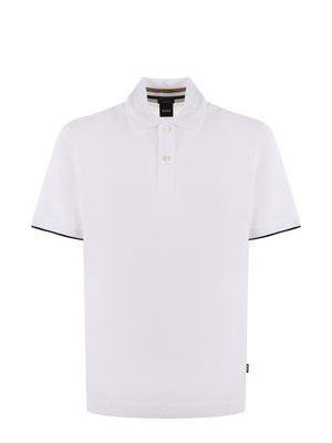 Polo Boss in piquet di cotone Bianco. Colletto a costine. Chiusura con 2 bottoni. Manica corta con profili a contrasto bicolore. Logo frontale applicato. Misura in foto M100% cotone