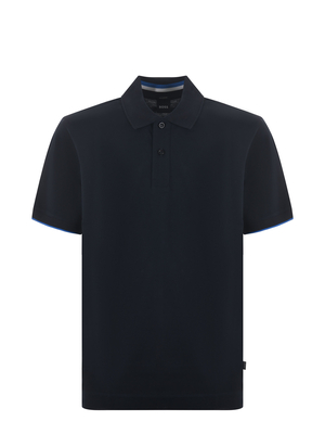 Polo Boss in piquet di cotone Blu scuro. Colletto a costine. Chiusura con 2 bottoni. Manica corta con profili a contrasto bicolore. Logo frontale applicato. Misura in foto M100% cotone