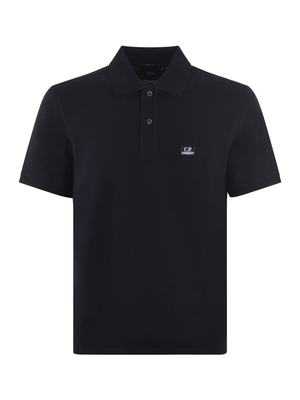 Polo C.P. Company in piqué di cotone Blu scuro. Colletto. Maniche corte. Chiusura con due bottoni. Lettering logo ricamato a contrasto sul petto. Spacchetti ai lati. Regular fit. 95% Cotone, 5%ElastanMade in China