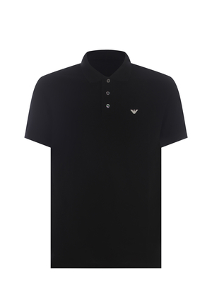 Polo Emporio Armani realizzata in piquet di cotone di colore Nero. Colletto a costine. Chiusura con tre bottoncini. Maniche corte. Logo a contrasto Bianco sul petto. Spacchetti laterali.99%Cotone, 1%Elastan