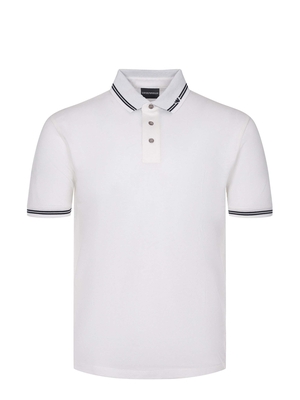 Polo Emporio Armani realizzata in Piquet di colore Bianco. Maniche corte. Colletto classico. Orlo con dettagli a contrasto. Chiusura con tre bottoni sul davanti. Ricamo logo sul colletto a contrasto. Fondo con spacchetti laterali.100% cotone