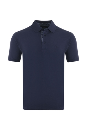 Polo Etro in piquet di cotone Blu scuro. Colletto a costine. Interno collo stampato. Chiusura a 3 bottoni. Manica corta. Logo frontale ricamato in tono. Spacchetti al fondo.Misura in foto M100% cotone