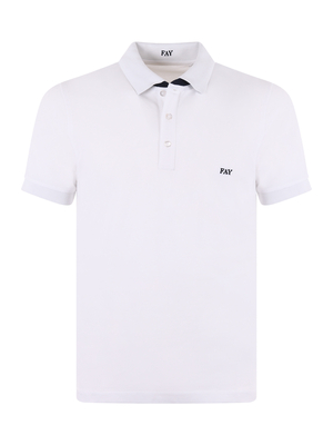 Polo Fay in piquet stretch Bianco. Colletto a costine e sottocollo a contrasto. Logo frontale ricamato. Chiusura con 3 bottoni. Manica corta. Spacchetti al fondo.Misura in foto M97% cotone, 3% elastene
