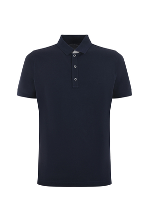 Polo Fay in piquet stretch Blu scuro. Colletto a costine e sottocollo a contrasto. Logo frontale ricamato. Chiusura con 3 bottoni. Manica corta. Spacchetti al fondo. Misura in foto M97% cotone, 3% elastene