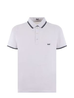 Polo Fay in piquet stretch Bianco. Colletto a costine con profilo nero. Logo frontale ricamato. Chiusura con 3 bottoni. Manica corta con profili neri. Spacchetti al fondo. Misura in foto M97% cotone, 3% elastene