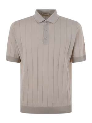 Polo Filippo De Laurentiis in filo di cotone Sabbia. Trama a coste. Colletto classico. Chiusura con 3 bottoni. Manica corta. Fondo a costine. Misura in foto 48100% cotone