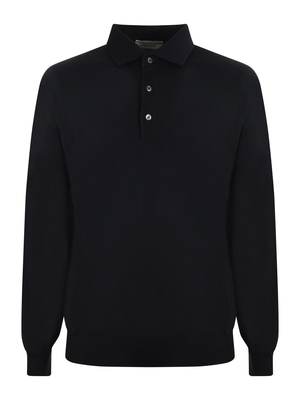 Polo Filippo De Laurentiis in filato leggero di lana merinos Nero. Maniche lunghe. Chiusura con tre bottoni. Polsi e fondo a costine.Misura in foto 50100% lana merinos 120s superfine