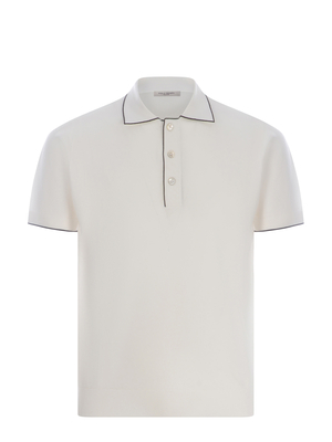 Polo Paolo Pecora realizzata in cotone di colore Bianco. Profili a contrasto Nero. Colletto. Chiusura con tre bottoni. Maniche corte. Polsi e fondo a costine. 100% Cotone