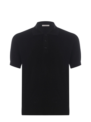 Polo Paolo Pecora in filo di cotone Nero. Traforata. Colletto classico. Chiusura con 3 bottoni. Manica corta raglan. Fondo a costine. Misura in foto M100% cotone ...